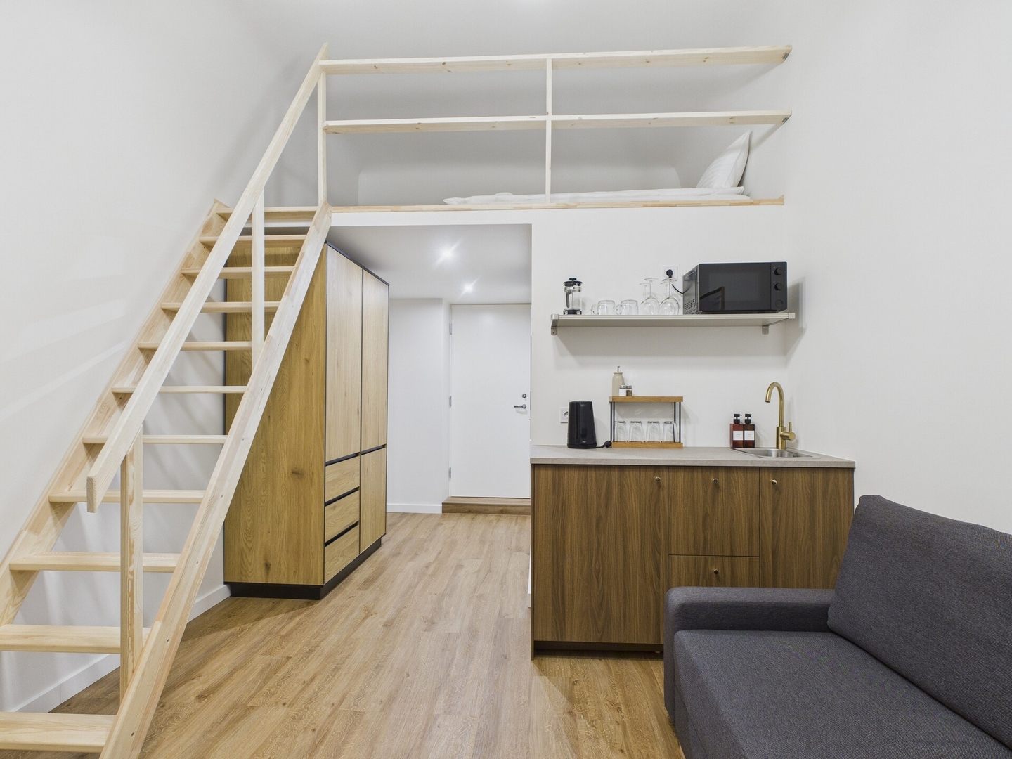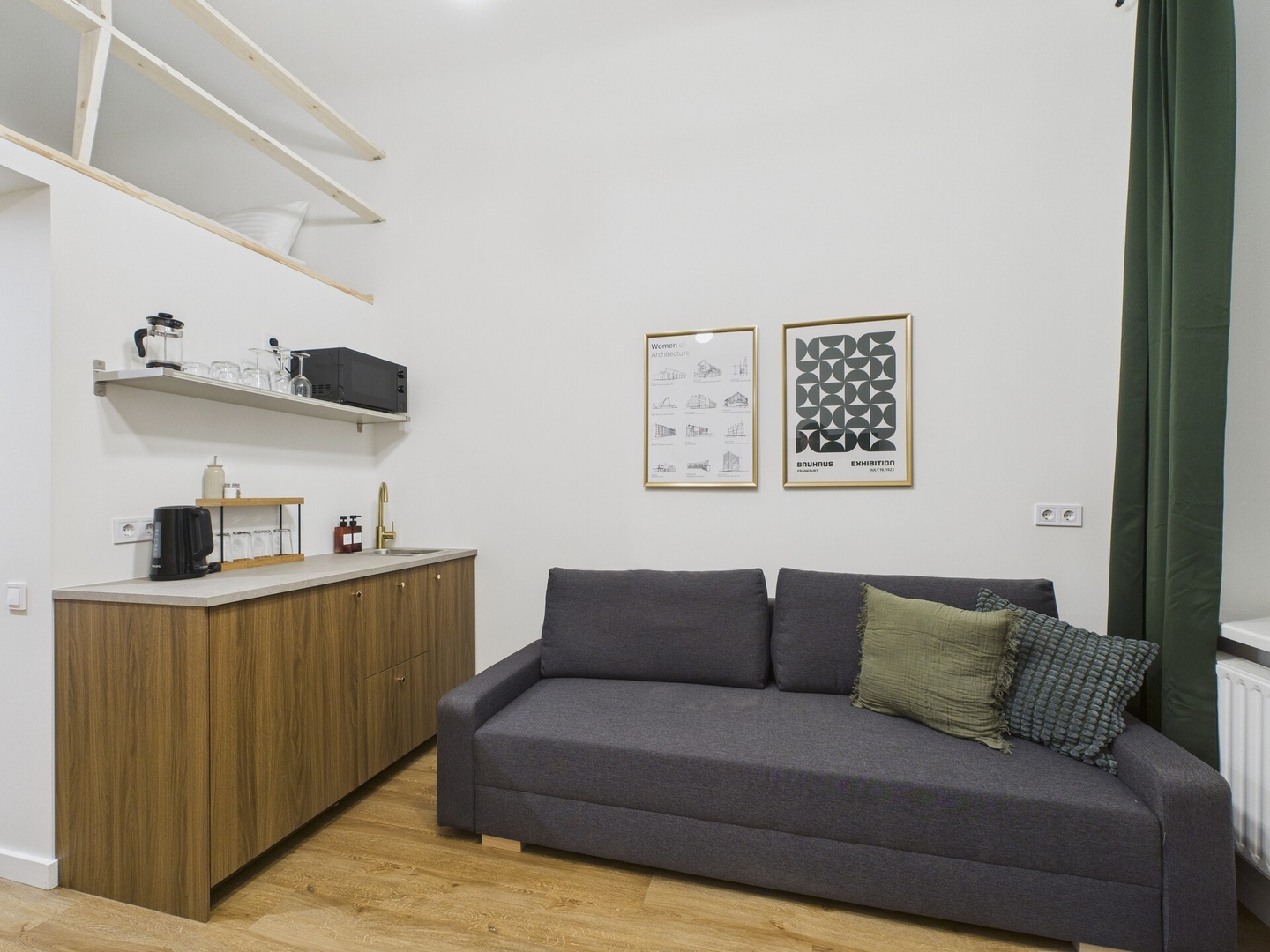 Set on the 4th floor with no elevator, this compact loft studio suits up to four guests and blends new renovation with the character of a historic building. Street-facing window brings natural light and offers a view, while the location places you steps from the Central Station, the market district and an easy walk to the Old Town.