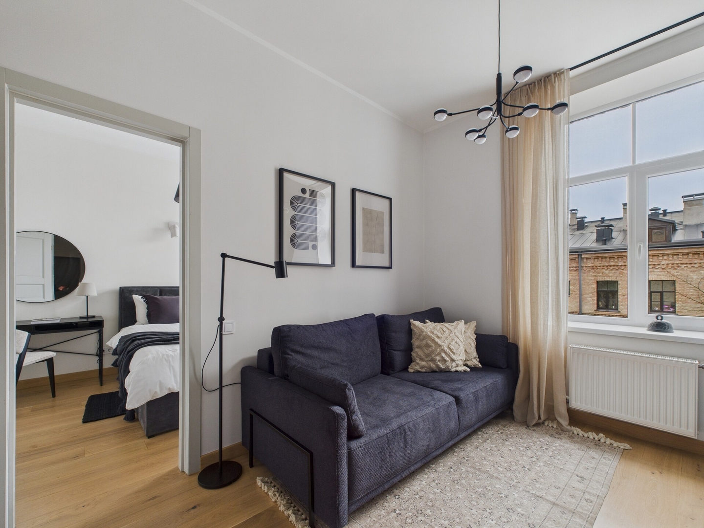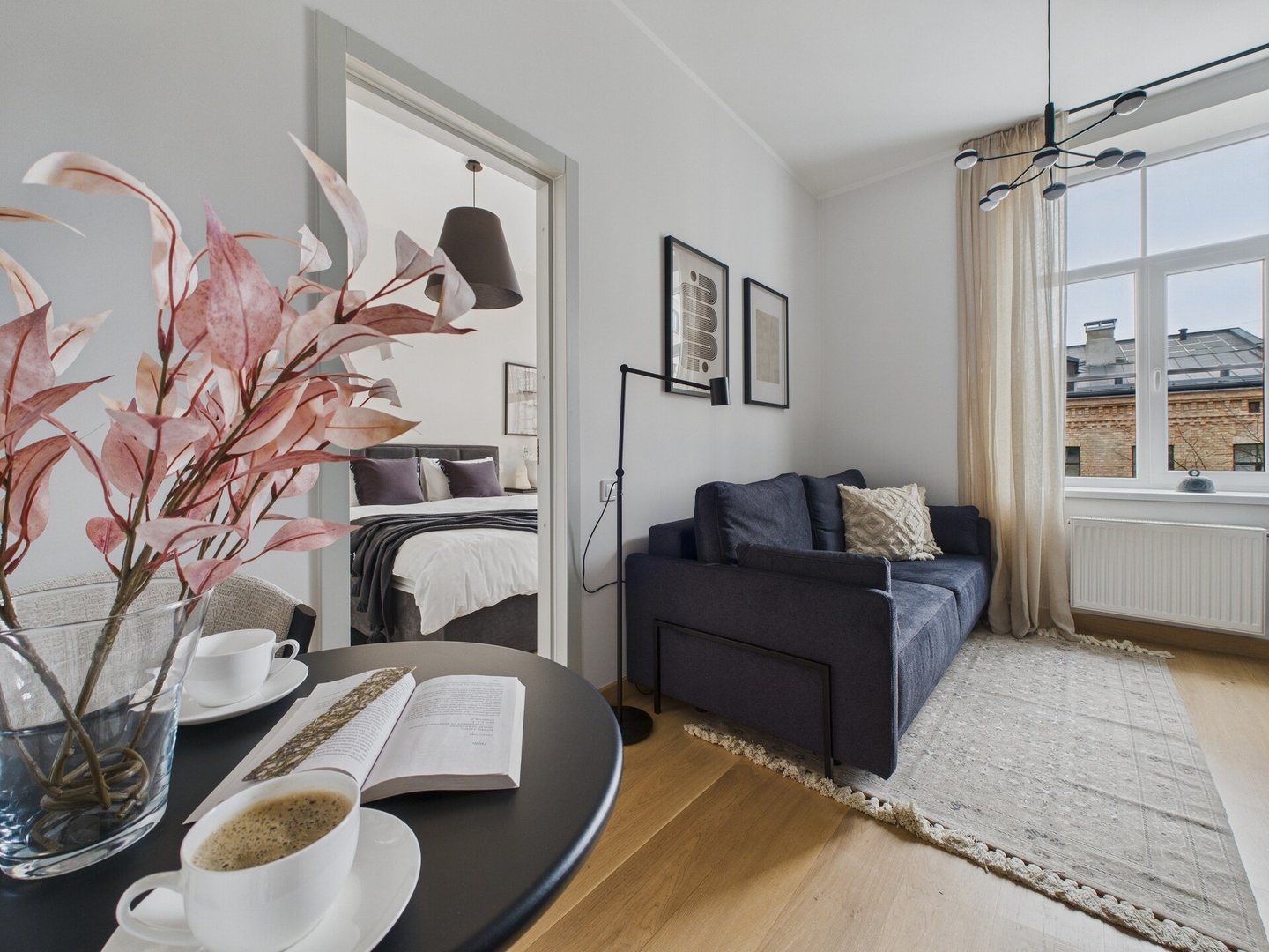 A thoughtfully designed studio apartment in Riga city centre, within walking distance of the Old Town. The apartment is located on the 4th floor of a historic building (stairs only) and offers a calm, comfortable base for city breaks, business trips, or longer stays. Professionally managed and well suited for guests who value quiet comfort and a central location.