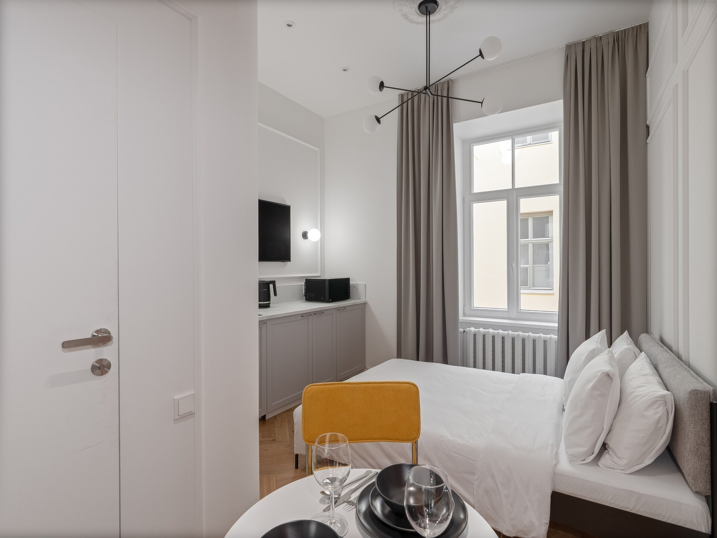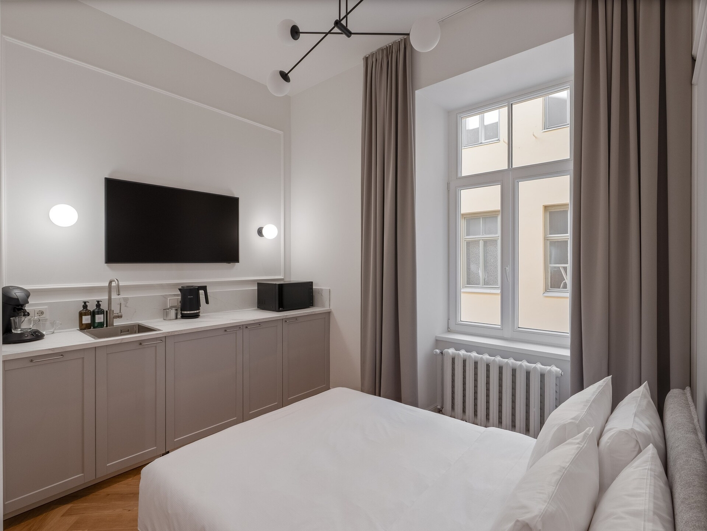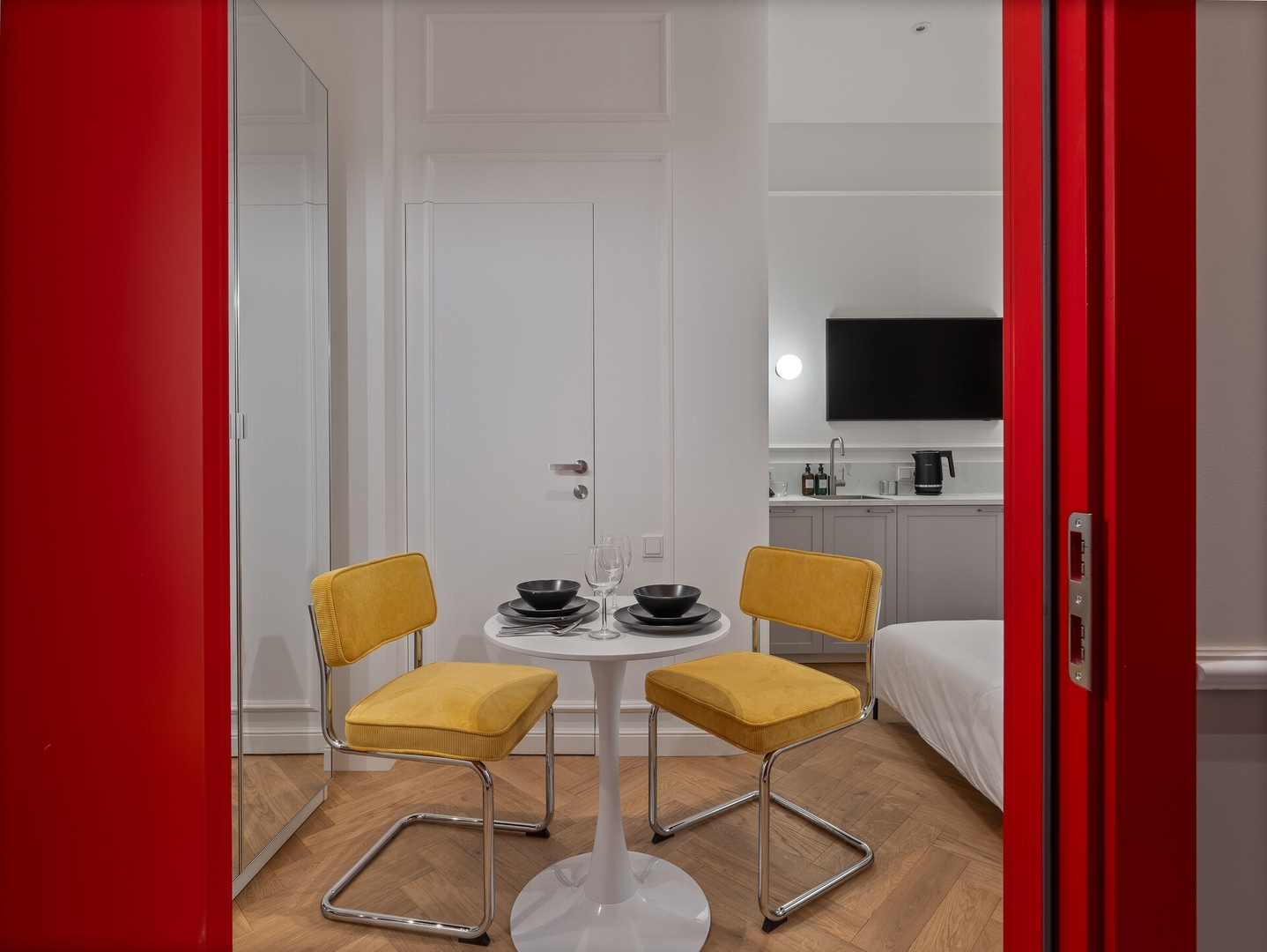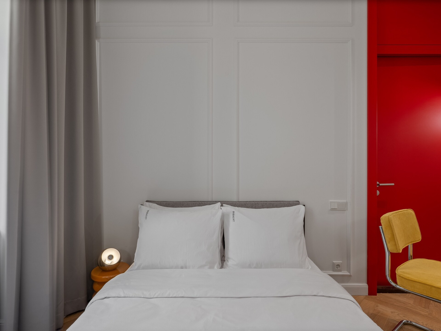 Modern studio apartment in Riga city centre next to Vērmane Garden, only a 5 minute walk to Old Town and Central Station. Recently renovated, it features a sleek contemporary interior with bold chromatic and red accents. Located on the second floor with stair access only. Compact yet thoughtfully designed and well equipped, it is perfect for short stays, couples, or business travellers seeking a stylish and convenient base in Riga.