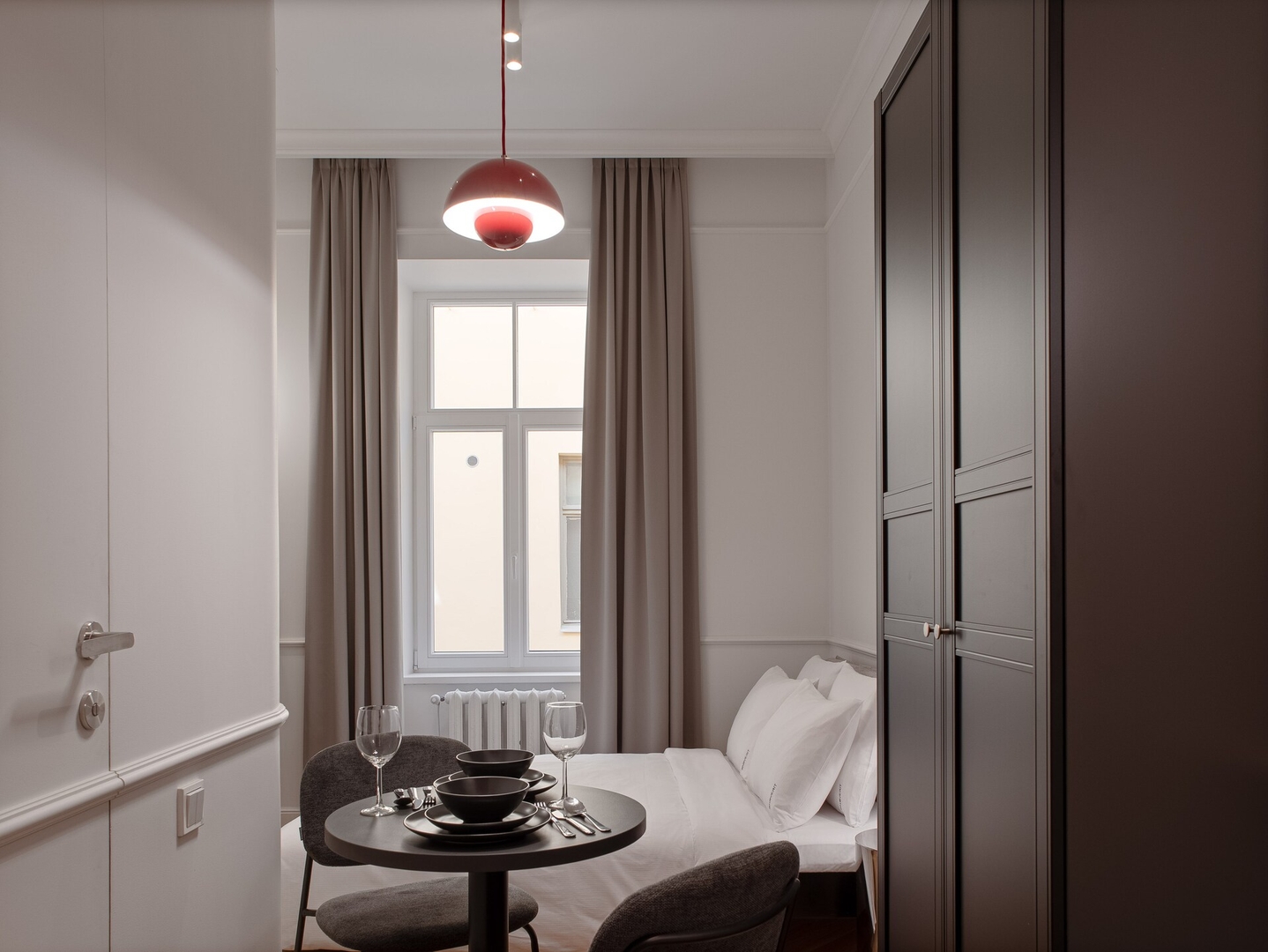 Modern studio apartment in Riga city centre next to Vērmane Garden, only a 5 minute walk to Old Town and Central Station. Recently renovated, it features a sleek contemporary interior with bold chromatic and red accents. Located on the third floor with stair access only. Compact yet thoughtfully designed and well equipped, it is perfect for short stays, couples, or business travellers seeking a stylish and convenient base in Riga.